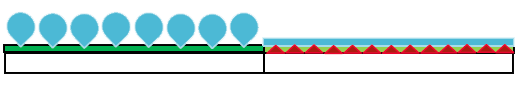 On the left, a normal hard coating. On the right,OLO® Anti-fog breaks down large water molecules into a transparent film.