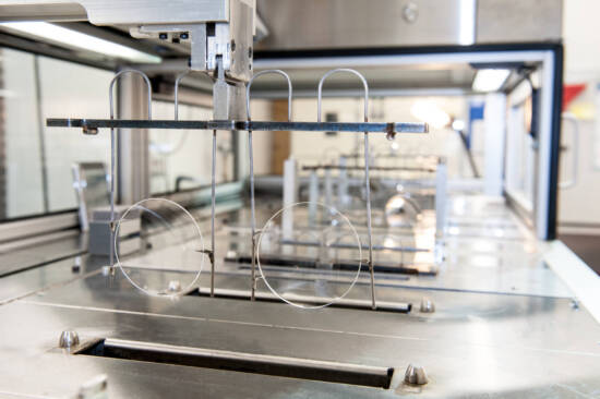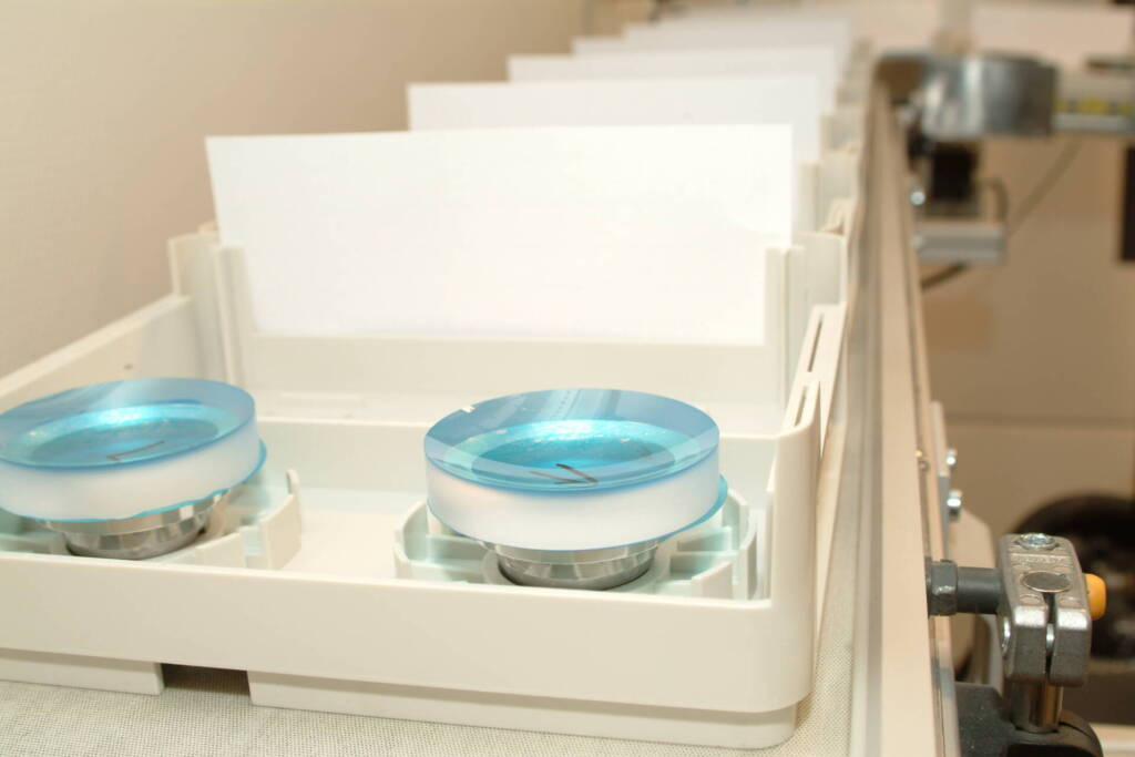 Lakan kuivuttua linssit tarkastetaan uudellaan ja siirretään seuraaviin työvaiheisiin.